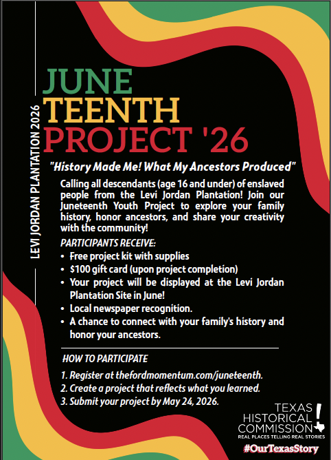Displaying these projects at the Levi Jordan Plantation site throughout June further amplifies this connection, creating a space for reflection and remembrance for all visitors.